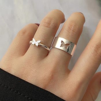 Fleepmart Trendy Gold Butterfly Rings For Women Men Lover Couple Rings Set Friendship Engagement Wedding Open Rings 2022 Jewelry