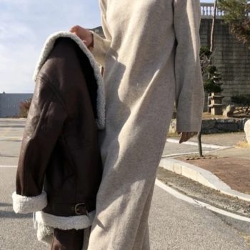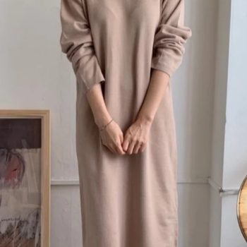 Fleepmart Autumn Winter Turtleneck Loose Women’s Knitted Long Dresses 2025 New Long Sleeve Solid Elegant Straight Dress Female