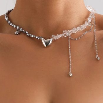 Fleepmart New Y2K Heart Beaded Necklace Women Boho Crystal Class Gravel Clavicle Chain Cool Y2K Choker Exquisite Fashion Jewelry