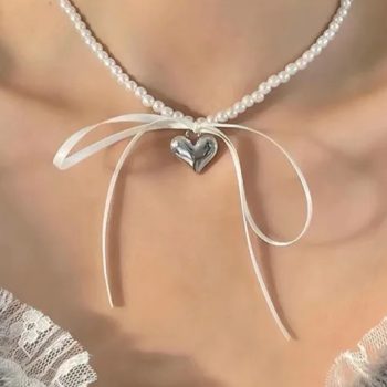Fleepmart Korean Romantic Imitation Pearl Beaded Choker Heart-Shaped Pendant Necklace Banquet Wedding Jewelry