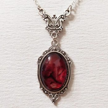 Fleepmart Gothic Vintage Red Quartz Crystal Necklace Butterfly Necklace Vampire Embossed Witch Jewelry Accessories Vintage Chokers