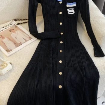 Fleepmart 2024 Autumn Sexy Tunics High Waist Bandage A-line Short Dresses for Women Streetwear Fashion Long Sleeve Lace-up Black Dress