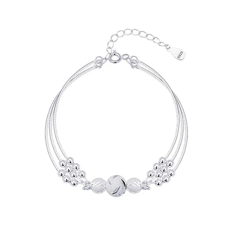 Fleepmart 925 Sterling Silver Round Bead Charm Bracelet &Bangle For Women Girls Party Bohemian Fashion Jewelry USA