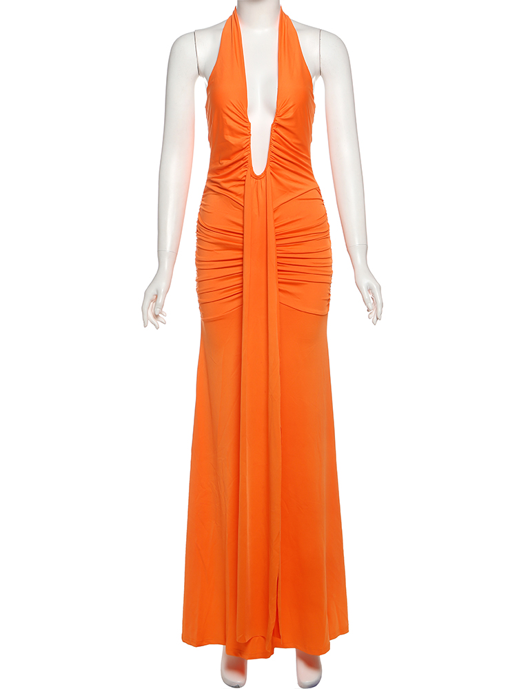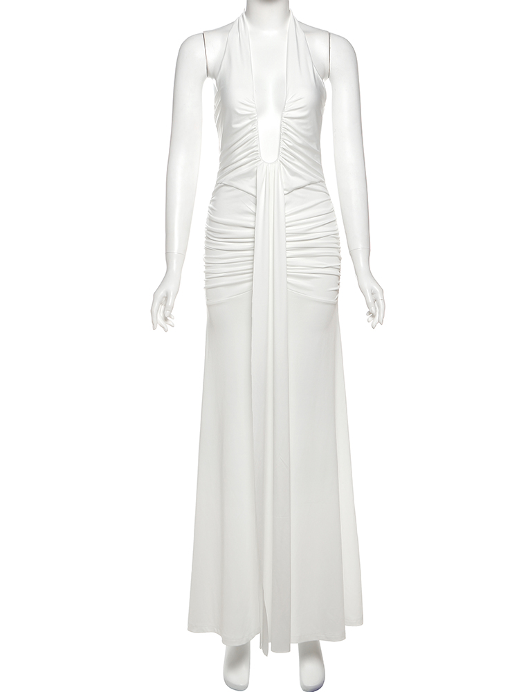 Fleepmart Backless Tassel Dress Women Peach Buttock Pleated Patchwork Solid Halter Sleeveless Midnight Clubwear Party Vestidos