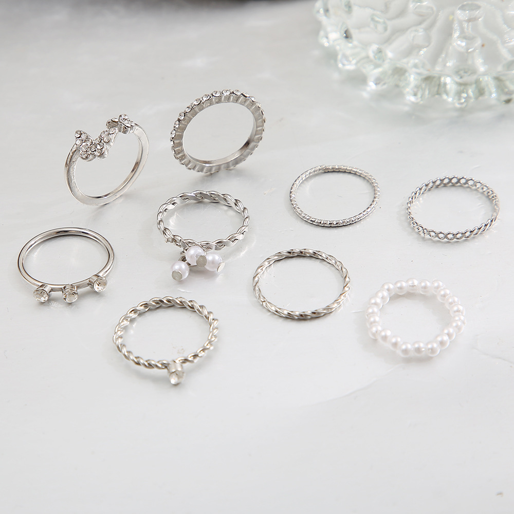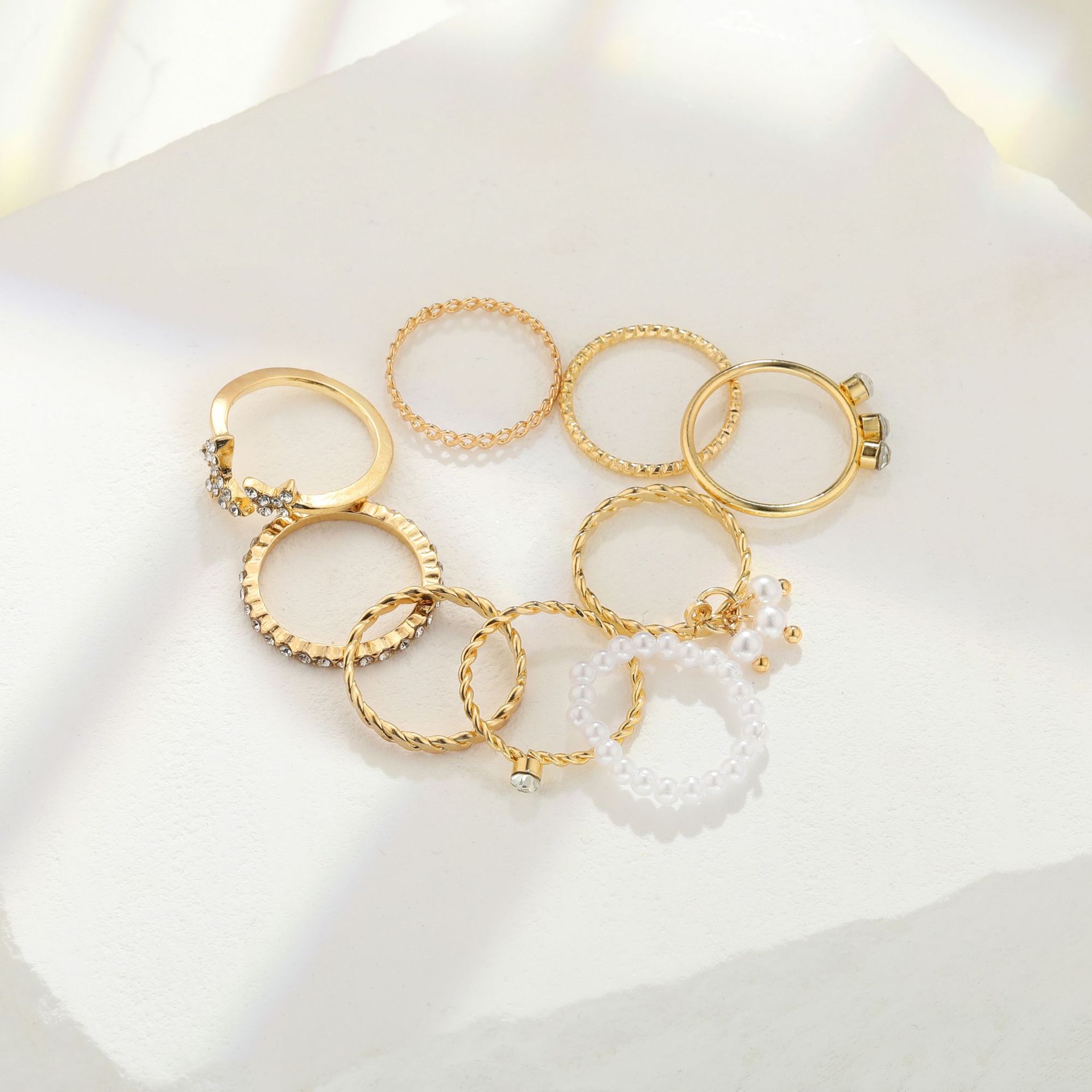 Bohemian Butterfly Pearl Rings Set for Women Shine Pearl Gothic Vintage Plated Retro Rhinestone Simple Finger Jewelry Gift