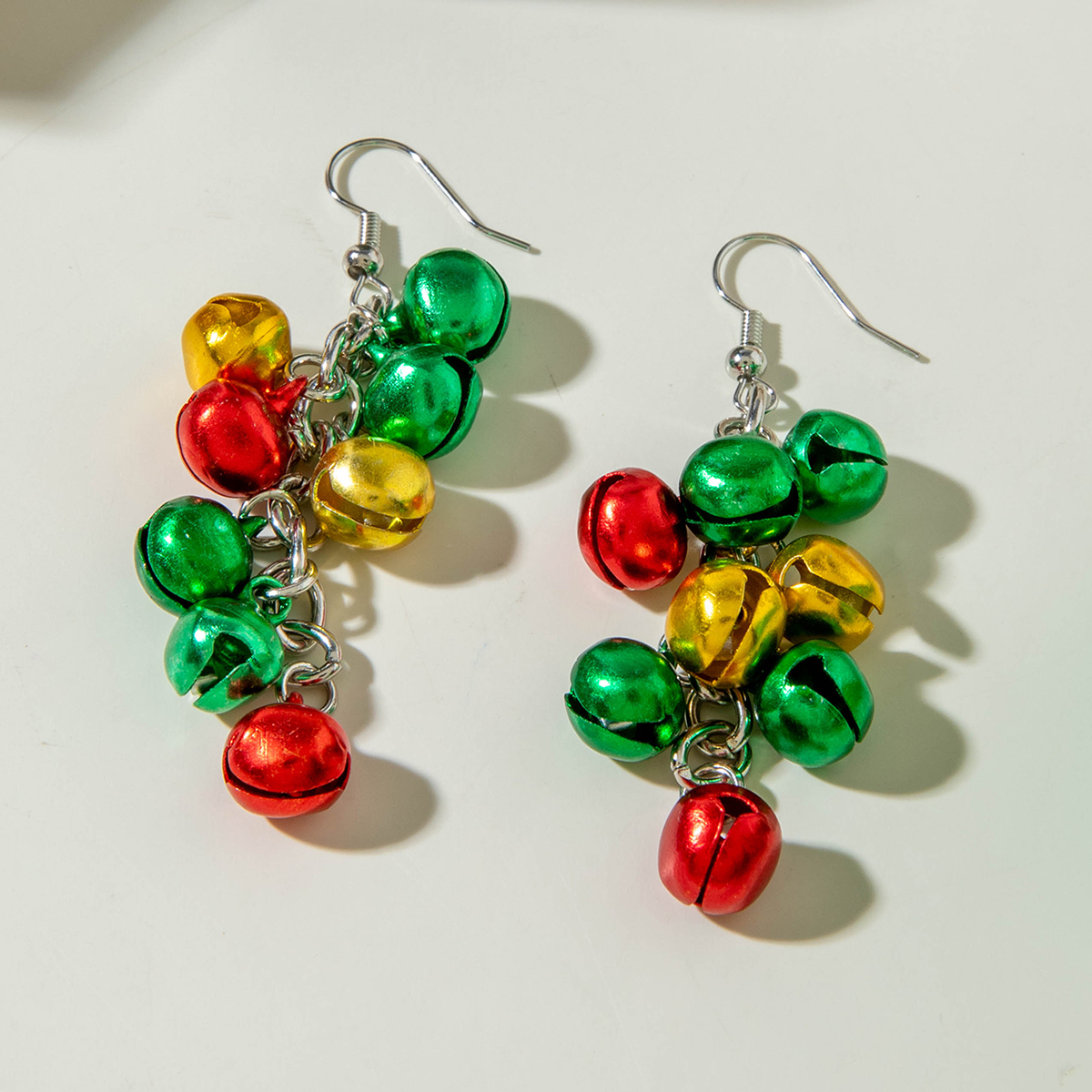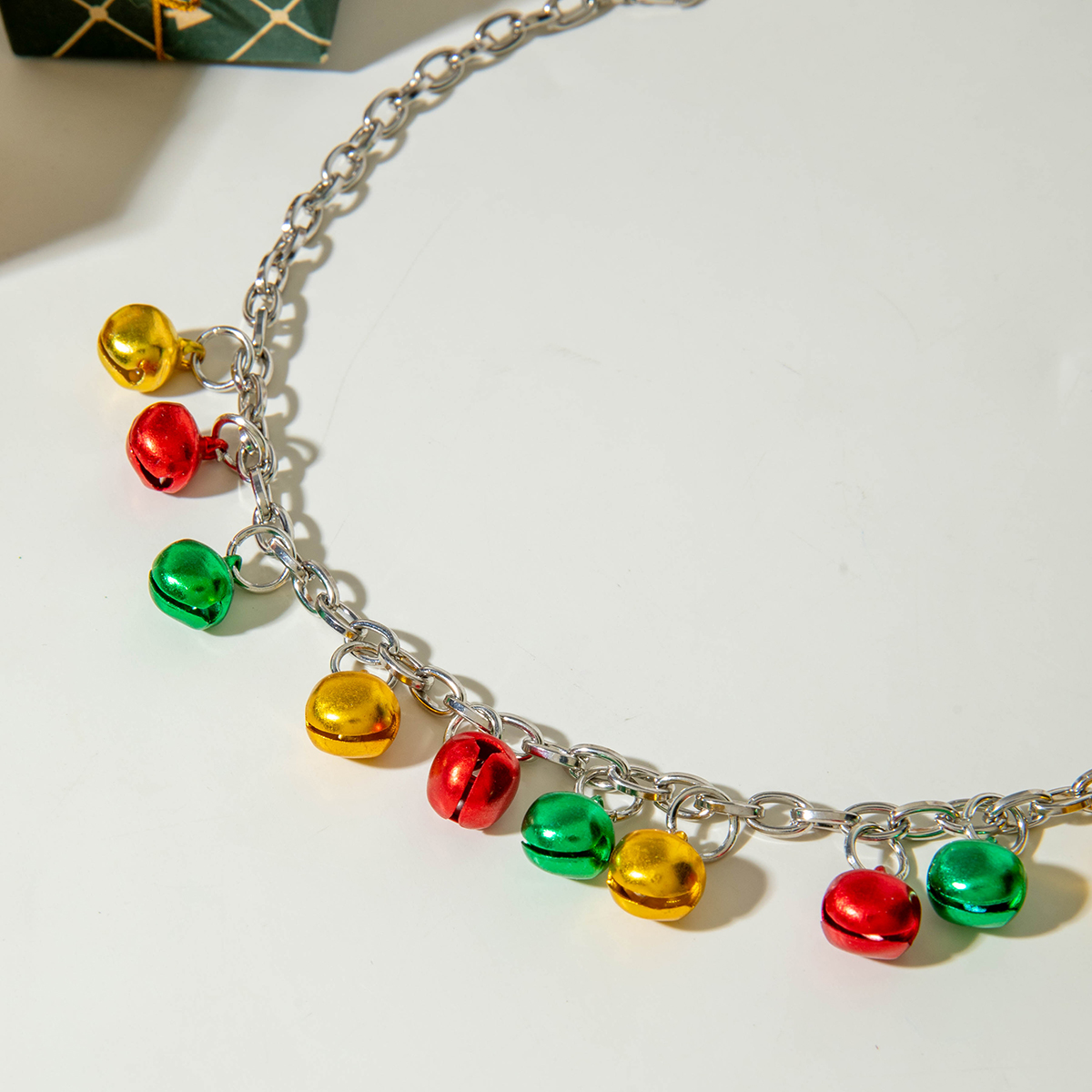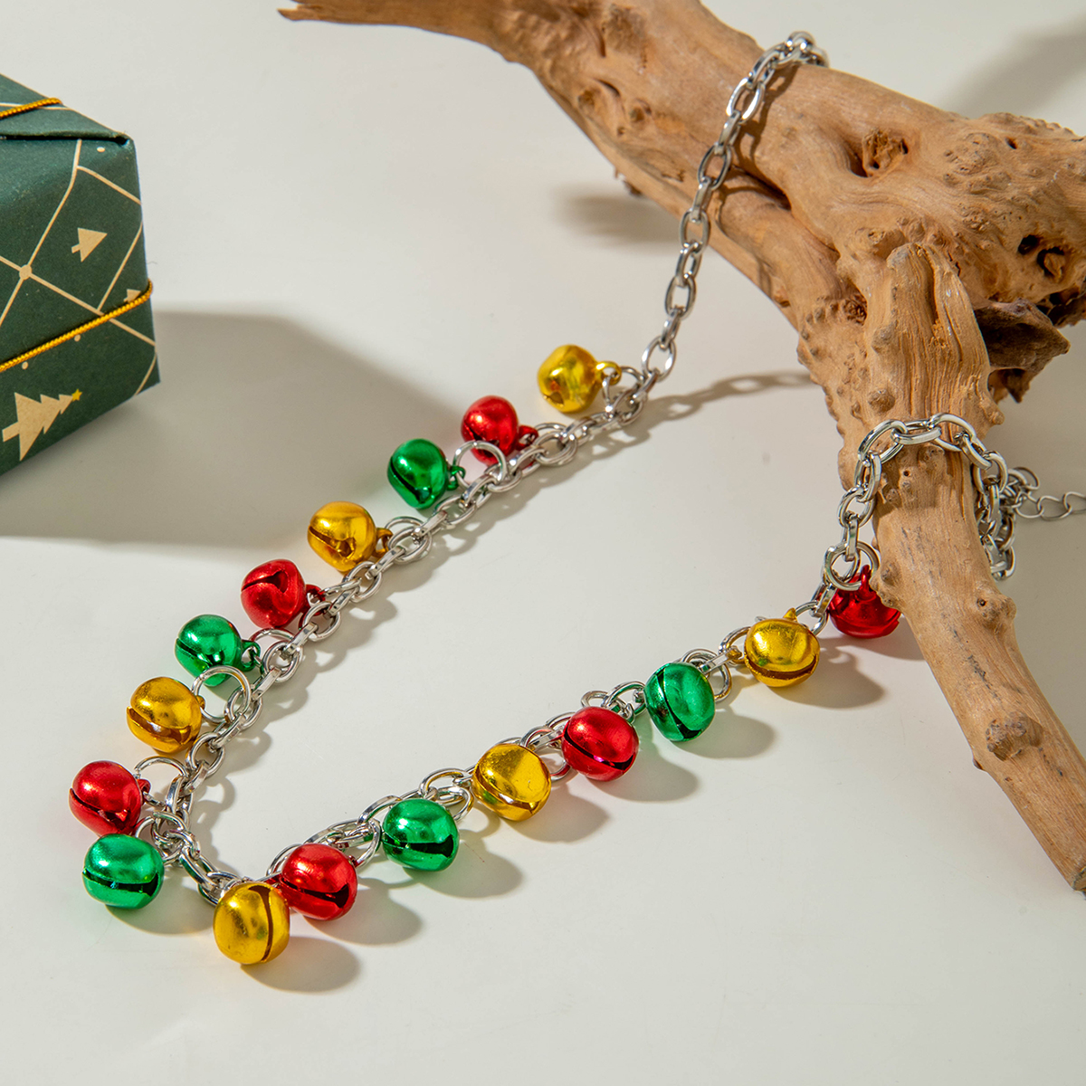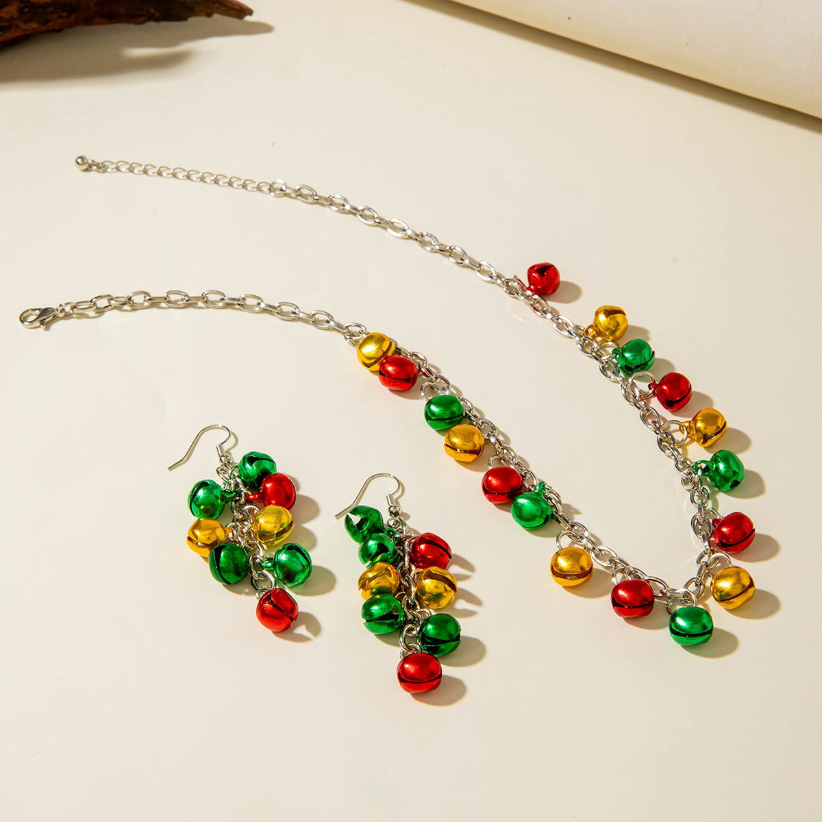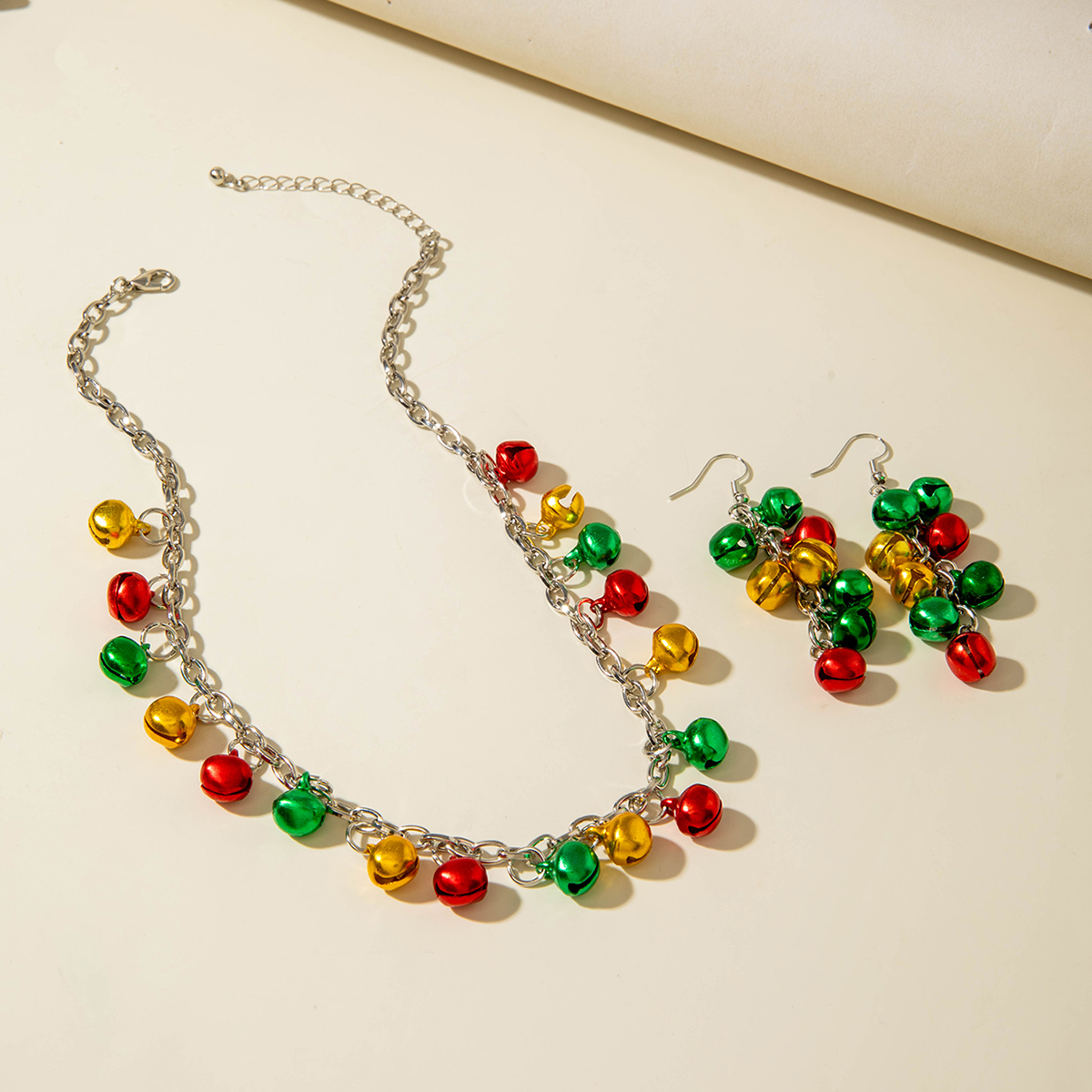 Fleepmart Creative Christmas Red Green Bells Jewelry Set For Women Exaggerate Bell Beaded Necklace Earrings Festival Jewelry