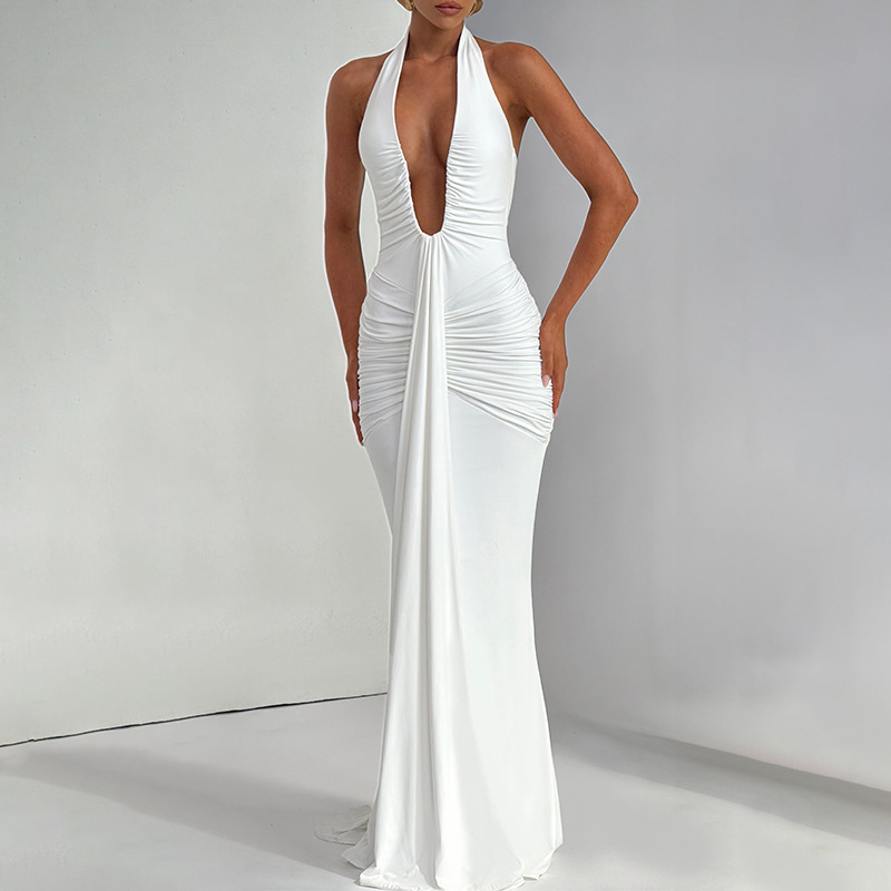 Fleepmart Ladies Summer Elegant Evening Party Dress For Women Sleeveless Backless Halter Sexy Long Dresses Woman Clothes Birthday Clubwear