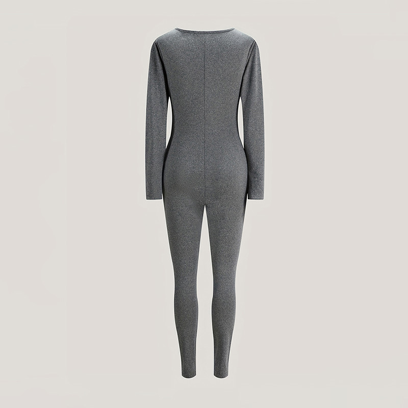 Fleepmart Women’s Jumpsuits Autumn New Long Sleeve Bodycon Fashion Zippers Sexy Grey Rompers Casual Streetwear Fitness Sports Yoga Overall