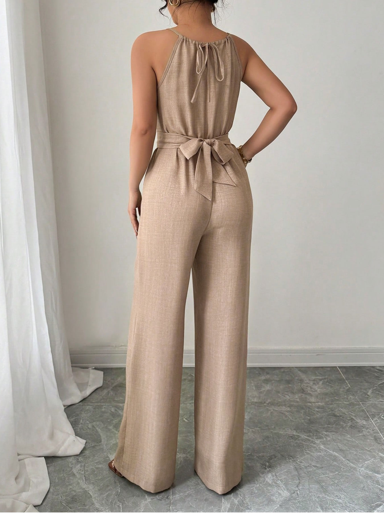 Fleepmart Women’s Jumpsuits Summer Sleeveless Solid Fashion Bandage O- Neck Sexy Slim Folds Jumpsuits Casual Streetwear Simple Jumpsuits