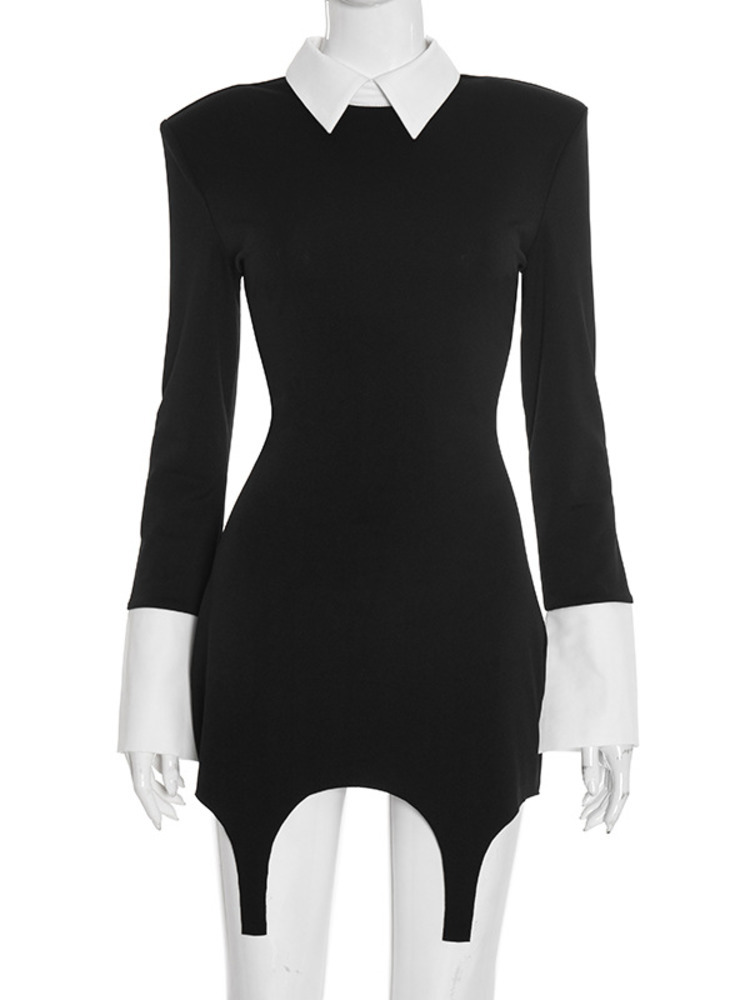 Fleepmart Polo Collar Long Sleeve Sexy Mini Dress Women Gown Autumn Winter Elegant Irregular Patchwork Club Party Dress Female