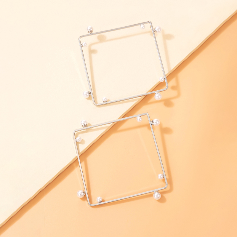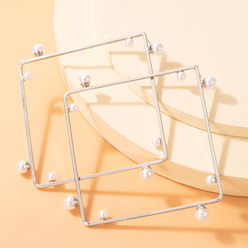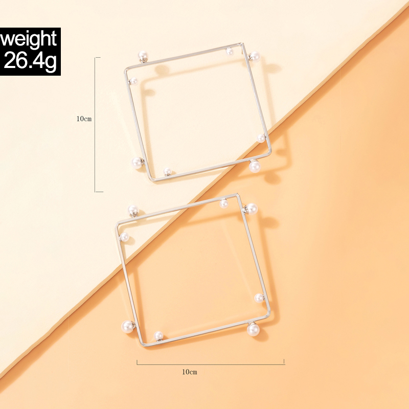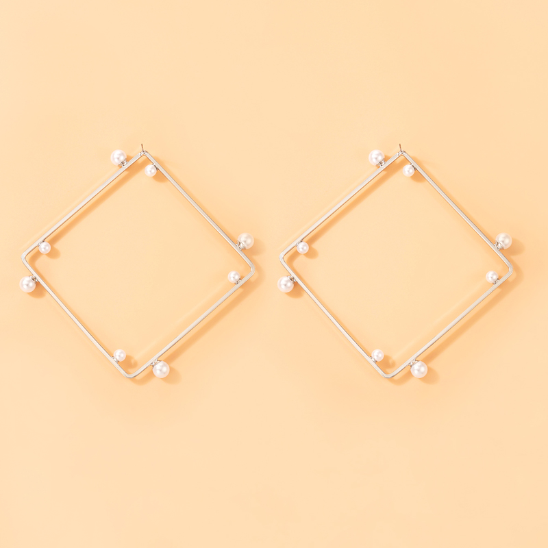 Fleepmart INS Fashion Big Square Drop Earrings for Women Luxury Pearl Stone Geometry Alloy Metak Party Jewelry