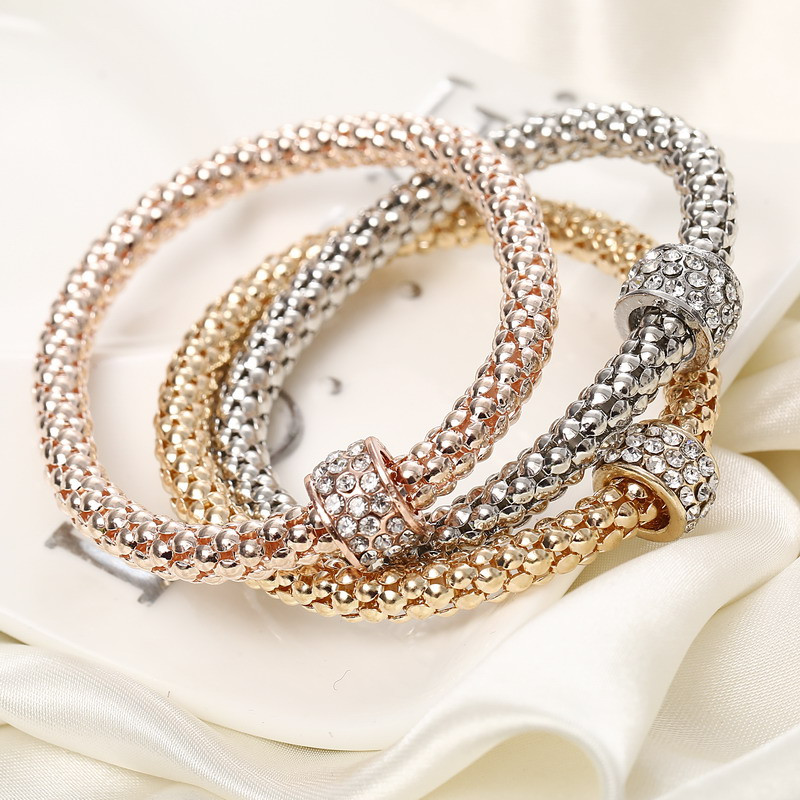 Fleepmart 3 Pcs/Set Crystal Round Bracelets&Bangles 3 Color Rose Gold Bracelets Pendants Rhinestone Bracelet Women bracelet femme
