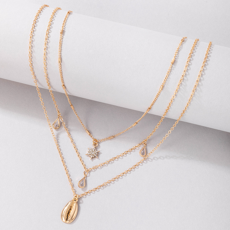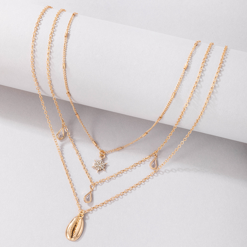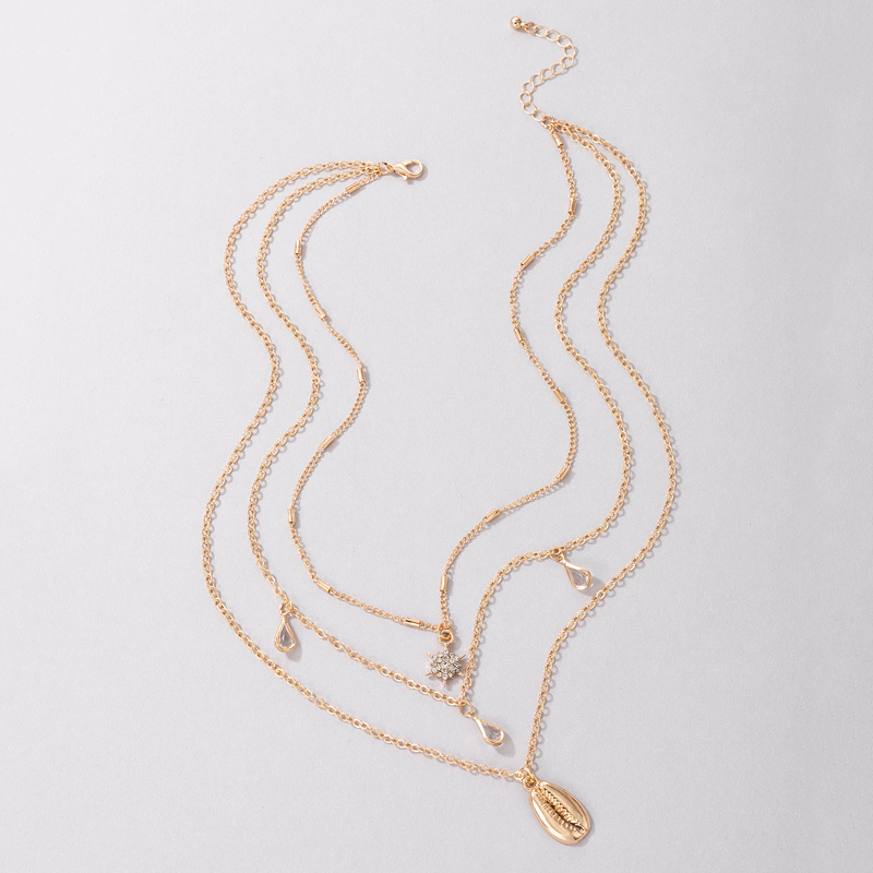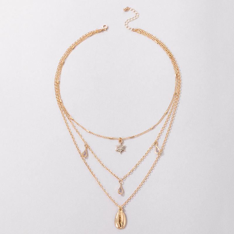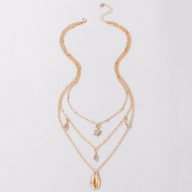 Fleepmart Bohemian Beach Shell Pendant Necklace Water Drop Opal Stone Sun Chian Multi-layer Chockers Women Accessories