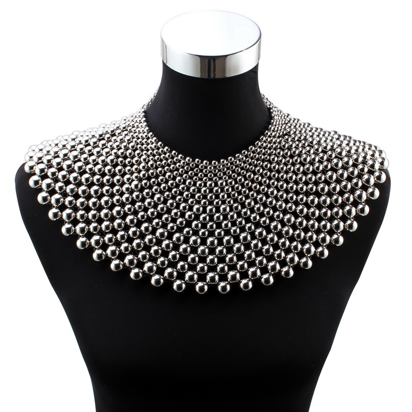 Fleepmart Big Chunky Ball Beaded Maxi Choker Collar Pendant Necklace for Women Florate Brand Handmade Chain Metal Statement Bead Necklace