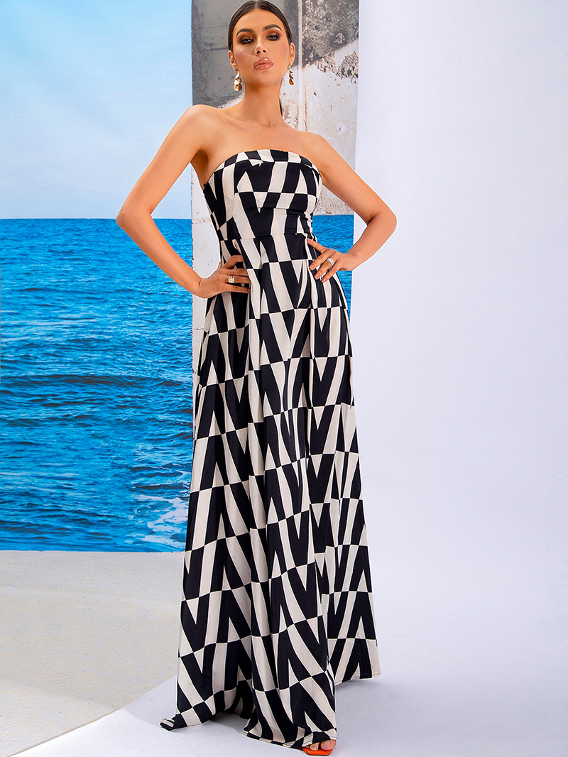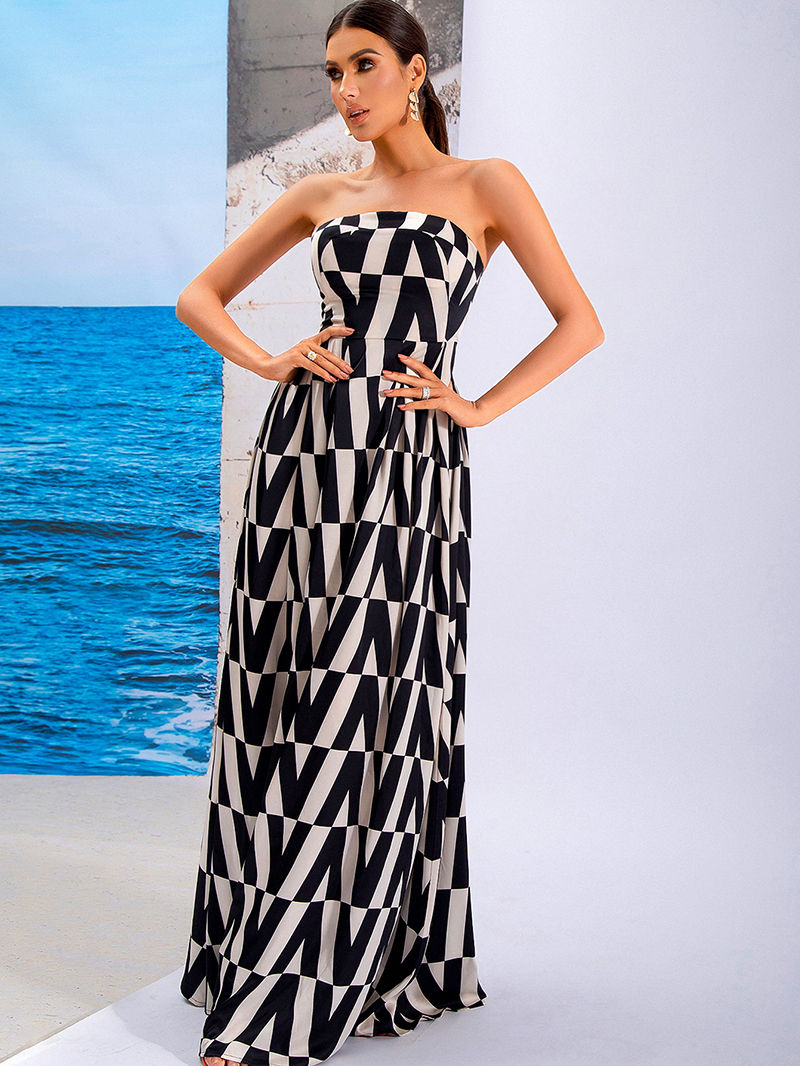 Fleepmart Sexy Tube Top Sleeveless Black Corset Black And White Patterned Party Dress