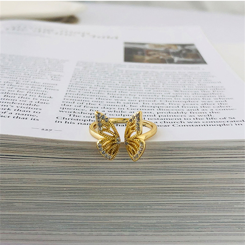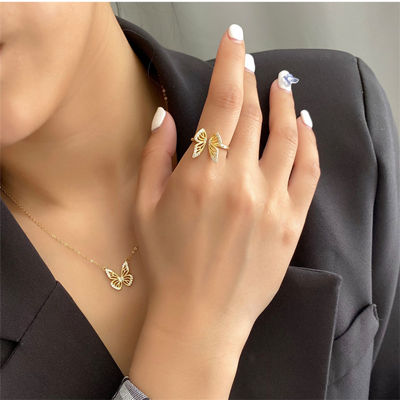Fleepmart Silver Golden Hollow Butterfly Ring Women Opening Adjustable Simple Temperament Party Jewelry Accessories