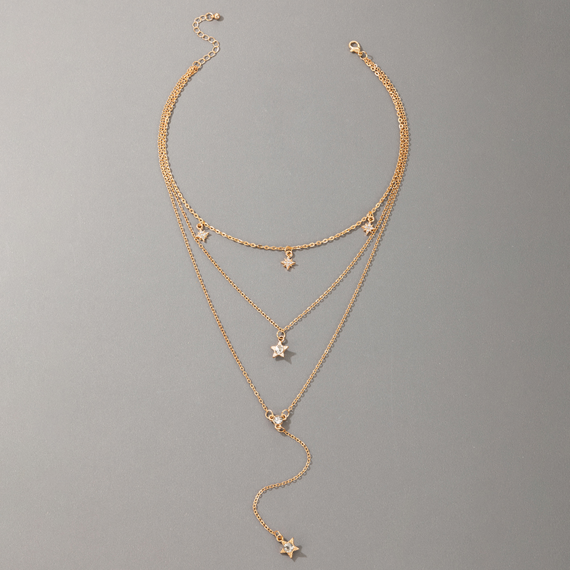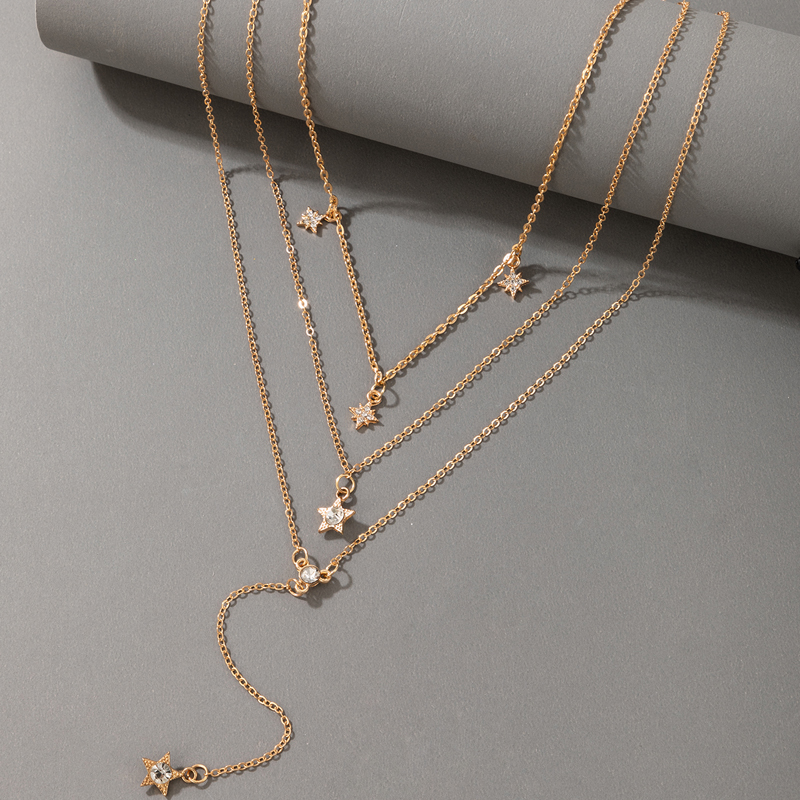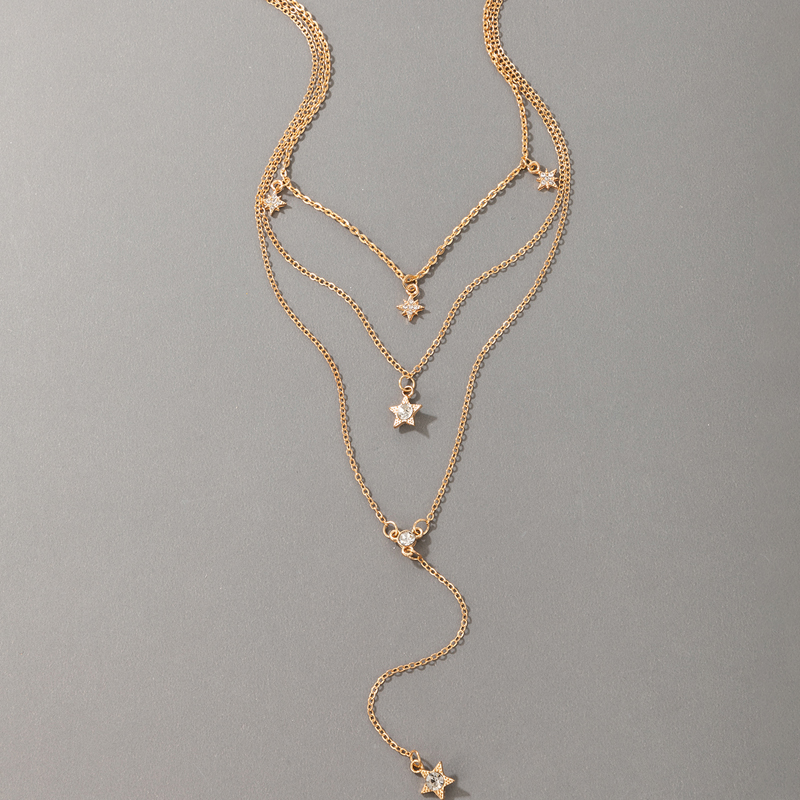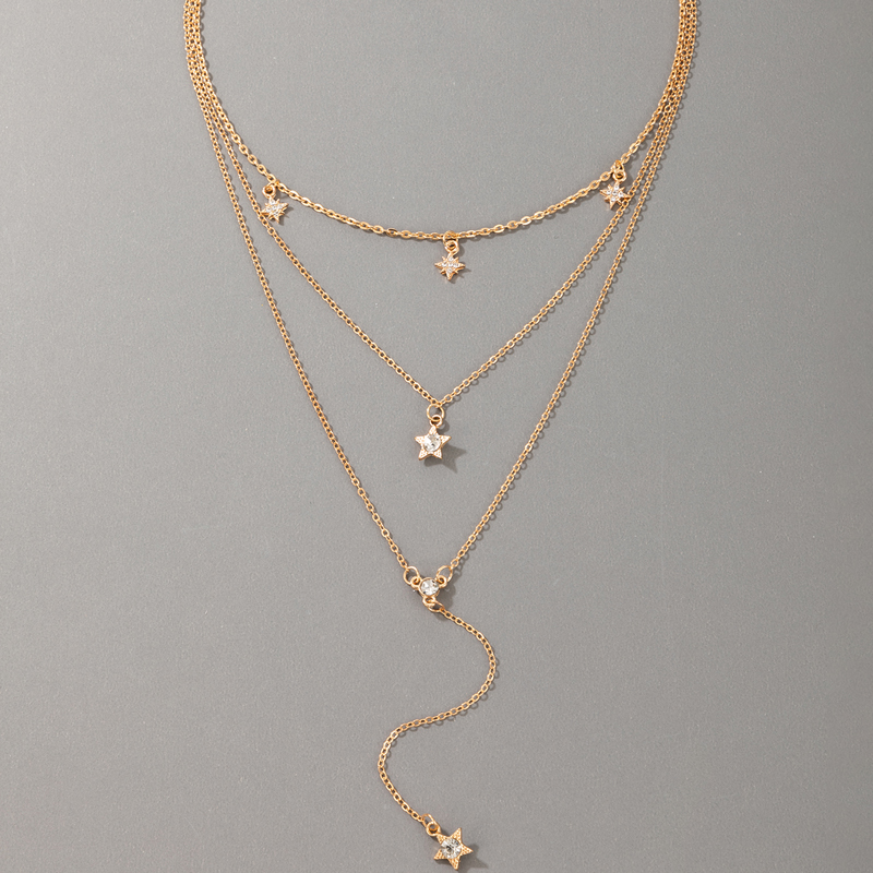 Fleepmart Charming Long Chain Star Pendant Necklace New Fashion Multi-layer Geometry Alloy Metal Adjustable Jewelry for Women