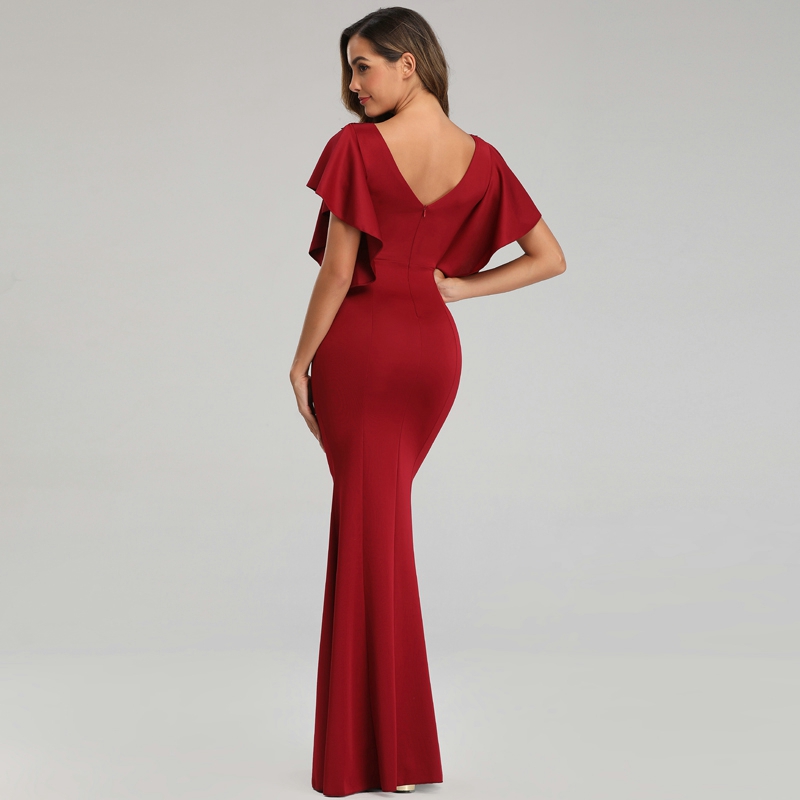 Fleepmart See-through V-neck Appliques Beaded Evening Dress Elegant Party Long Dress