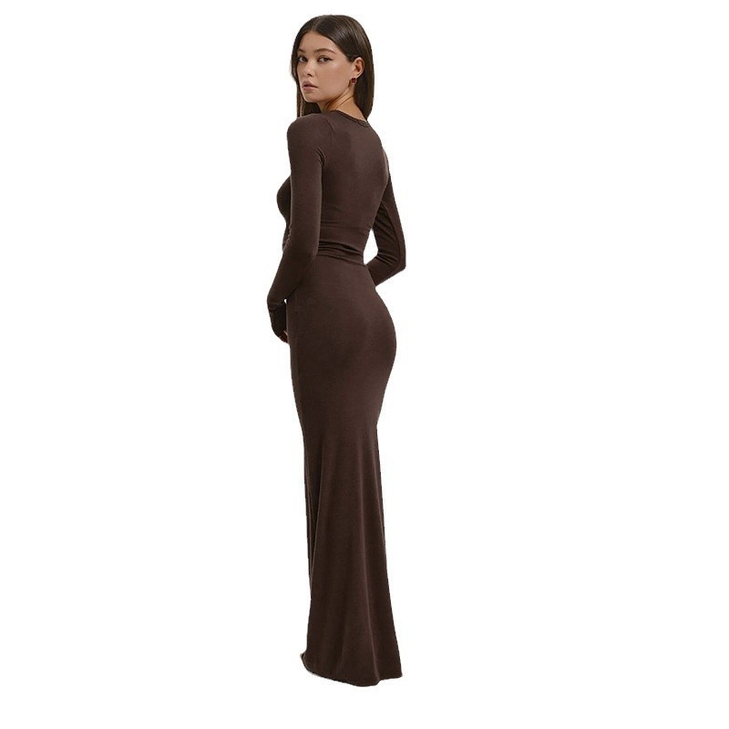 Fleepmart Spot Europe and the United States cross-border 2025 autumn new women’s solid color round neck long sleeve long dress women