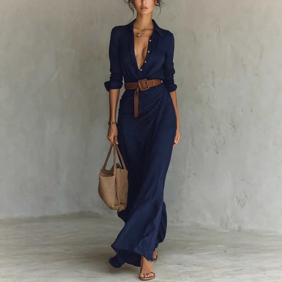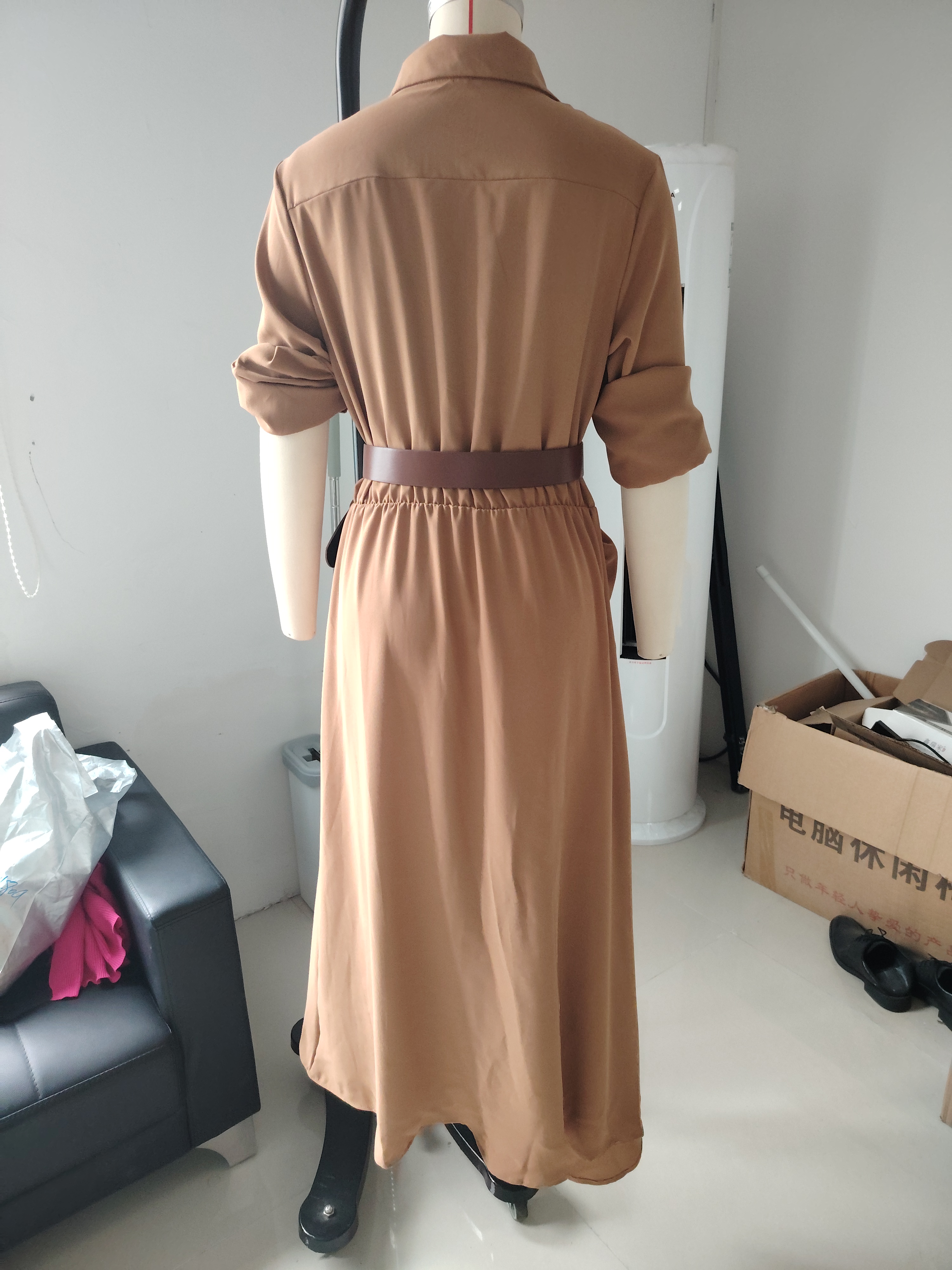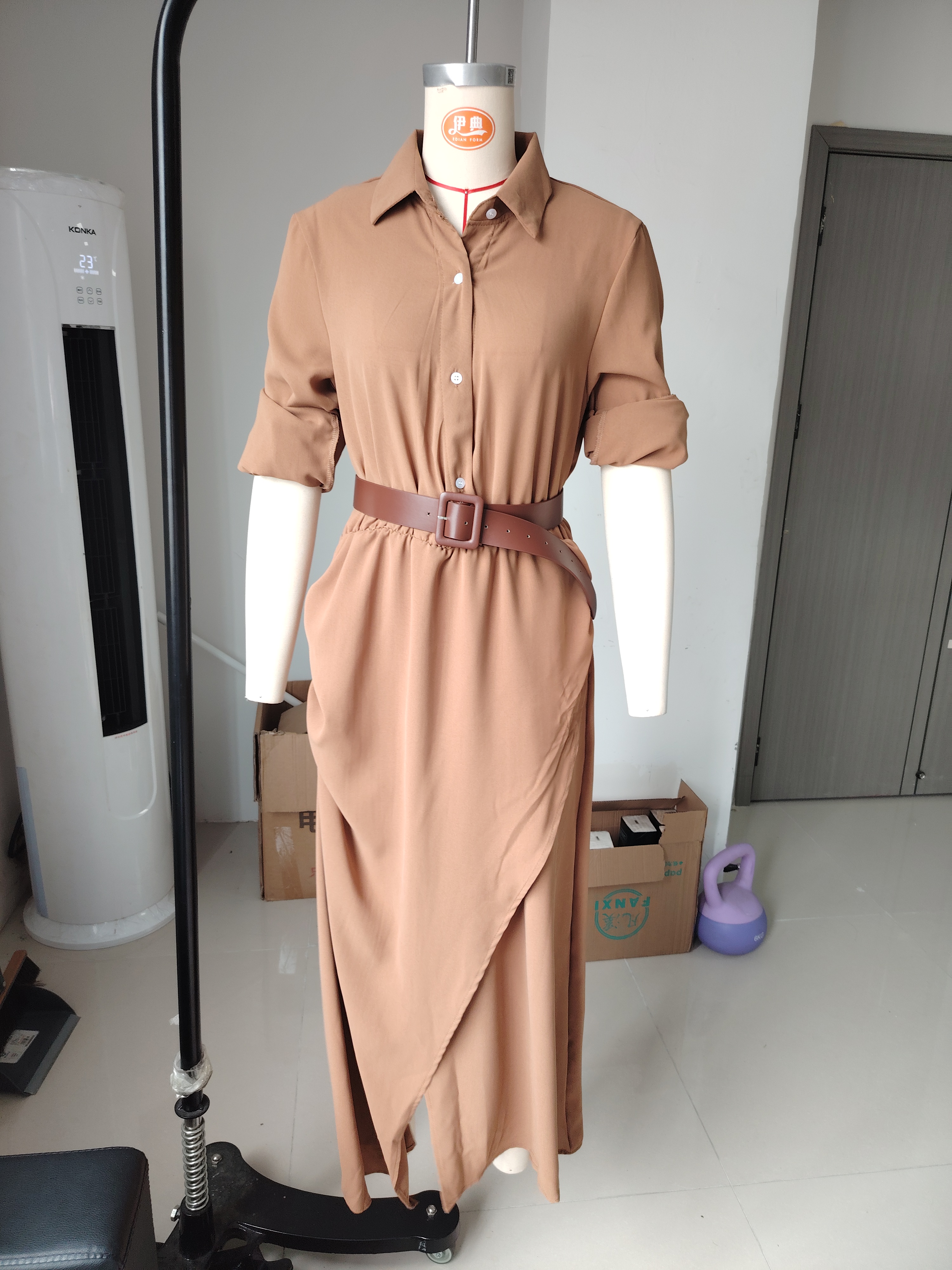 Fleepmart White Turn-down Collar Button Long Dress Womens Casual Solid Lace-up Slim Autumn Long Sleeve Office Party Dresses Robes Vestido