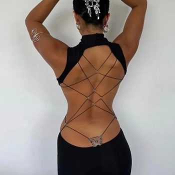 Fleepmart Sexy Backless Butterfly Detail Long Club Party Summer Sleeveless Maxi Dress Elegant Outfits Robe