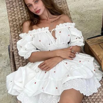 Fleepmart Foridol White Summer Women’s Dress Strawberry Printed Vintage Short Dresses Lace Decor Tierred Party Dress for Petite Beach 2024