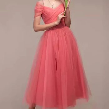Fleepmart Spring Summer New Mesh Women’s Dress Sexy One Collar Strap Wedding Bridesmaid Dress