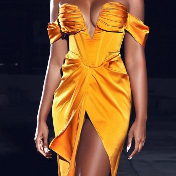 Fleepmart Yellow Off Shoulder Satin Corset Dress 2022 High Quality Sexy Bodycon Dress Women Summer Party Dress Evening Club Outfits