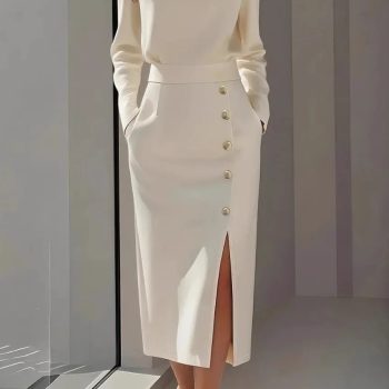 Fleepmart Fashion O Neck Split Women Dress 2025 Autumn Winter Slim Button Casual LongSleeve High Waisted Bodycon Party Dresses Elegant