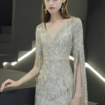 Fleepmart Sexy V Neck Sequin Evening Dress 2022 New Women Party Bodycon Maxi Dress White Wedding Long Prom Dress