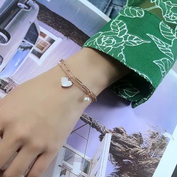 Fleepmart 316L Stainless Steel New Fashion Fine Jewelry 2 Layer Embed Seashells Pearl Bracelets Women