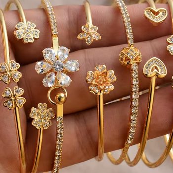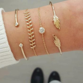 Fleepmart Punk Charm Bracelet New Popular Jewelry Leaf Crystal Women’s 4-piece Set Bracelet