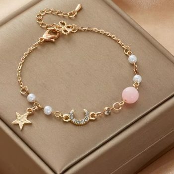 Fleepmart Korean Simple Star Moon Zircon Pearl Bracelet For Women Ladies Cute Elegant Exquisite Shiny Link Chain Bracelet Charm Jewelry