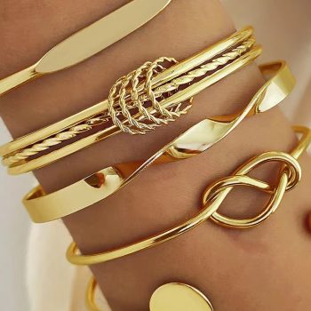 Fleepmart 5Pcs Set Gold/Silver Color Fashion Charm Bracelet Women Retro Glossy Geometric Metal Twist Chain Bangles Bracelet Set Jewelry