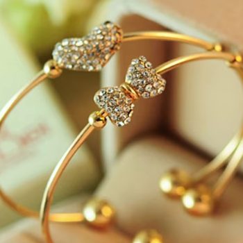 Fleepmart Women’s Cute Elegant Heart and Bowknot Cuff Bracelet Bangles Crystal Charming Accessory Rotatable Fine Wrist Jewelry