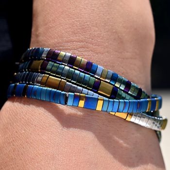 Fleepmart 4Pcs Miyuki Tial Beads Bracelet for Women Elastic No Fade Hematite Beads Stackable Charm Pulseras Femme Beach Jewelry Access