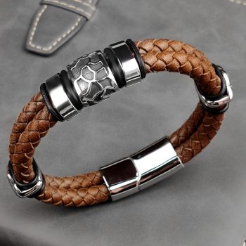 fleepmart 2021 Stainless Steel Irregularly Cracked Bead Bracelet Genuine Braided Leather female Bracelets & Bangles women’s Jewelry