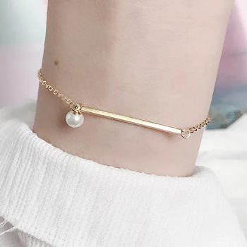 Fleepmart Silver Bohemian Simple Cylindrical Pearl Chain Bracelet Women Beach Casual Jewelry Accessories Friendship Gift