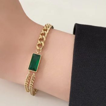 Fleepmart Classic Geometric Rectangle Green Crystal Stainless Steel Chain Adjustable Bracelets For Woman Wedding Party Jewelry Girl Gift