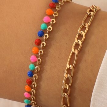 Fleepmart Trendy Colorful Dripping Oil Beads Bracelets for Women Pretty Gold Alloy Adjustable Bracelet 2pcs/set Jewelry