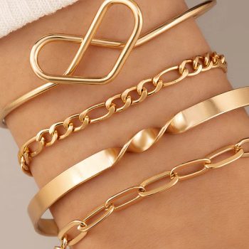 Fleepmart 5Pcs Set Gold/Silver Color Fashion Charm Bracelet Women Retro Glossy Geometric Metal Twist Chain Bangles Bracelet Set Jewelry