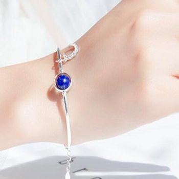 Fleepmart Sole Memory Fresh Blue Crystal Moon Literary Moonstone 925 Sterling Silver Female Resizable Bracelets