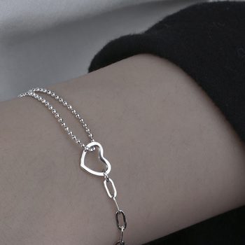 Fleepmart 925 Sterling Silver Double Stitching Hollow Love Heart Bracelet Female Fashion Personality Sweet Romantic Wedding Gift