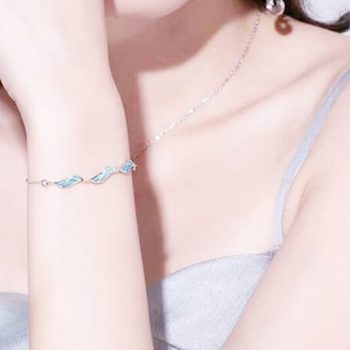 Fleepmart Blue Drip Glaze Waves Spray Fresh Lovely 925 Sterling Silver Female Resizable Bracelets