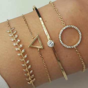 Fleepmart Hot Charm 4 Pcs/set Women’s Fashion Crystal Triangle Circle Leaf Chain Gold Bracelet Set Party Wedding Jewelry Gifts 2021