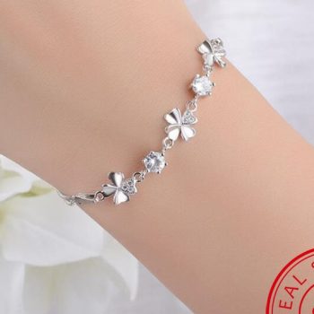 Fleepmart New Fashion 925 Sterling Silver Women Bracelets Jewelry Top Quality Crystal Clover Female Anklets For Girl Party Bijoux