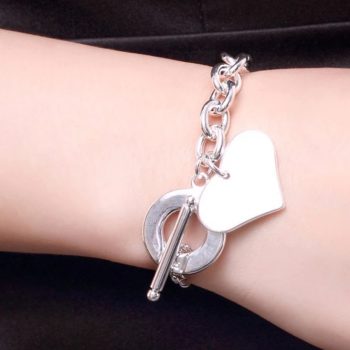 Fleepmart Fashion Smooth Love Heart Charm Bracelet For Women 925 Sterling Silver Bracelets Female Hand Chain Wristband Pulseira