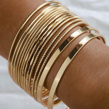 Fleepmart 14pcs/sets Trendy Gold Bracelets for Women Charming Alloy Metal Bangle Party Jewelry Bohemian Jewelry Gift
