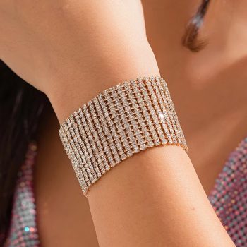 Fleepmart Luxury Goth Full Iced Out Rhinestone Adjustable Chain Bracelet for Women 2024 Trend Wed Bridal Creative Bangles Couple Jewelry