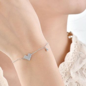 Fleepmart Sole Memory Simple Sweet Romantic Zircon Heart 925 Sterling Silver Female Resizable Bracelets